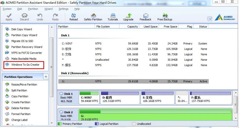 AOMEI Partition Assistant Standard is a free software that help users to resize, merge, copy, wipe partitions, migrate OS to SSD, convert NTFS to FAT32, create a Windows 8/8.1 To Go Bootable USB Drive and so on.