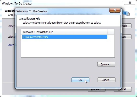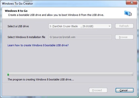 - Windows To Go Creator, installing Windows 8 to removable flash drive.