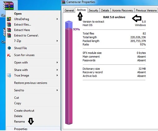 If you have installed winrar 5, then just right-click a .rar file, next select ‘Properties’ in the context menu and click on Archive tab, you will find the version of archive format.