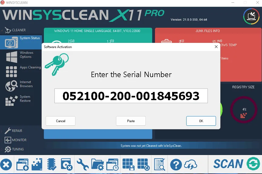 WinSysClean X11 PRO is a Windows utility that cleans your computer’s registry and does other maintenance tasks.