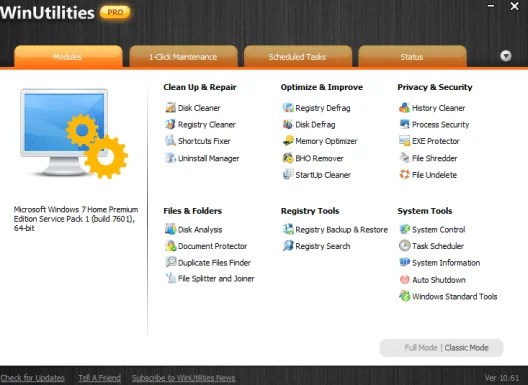 WinUtilities Pro is a system tweaking suite that offers more than 20+ different tools designed to improve or optimize and speed up your system performance (PC).