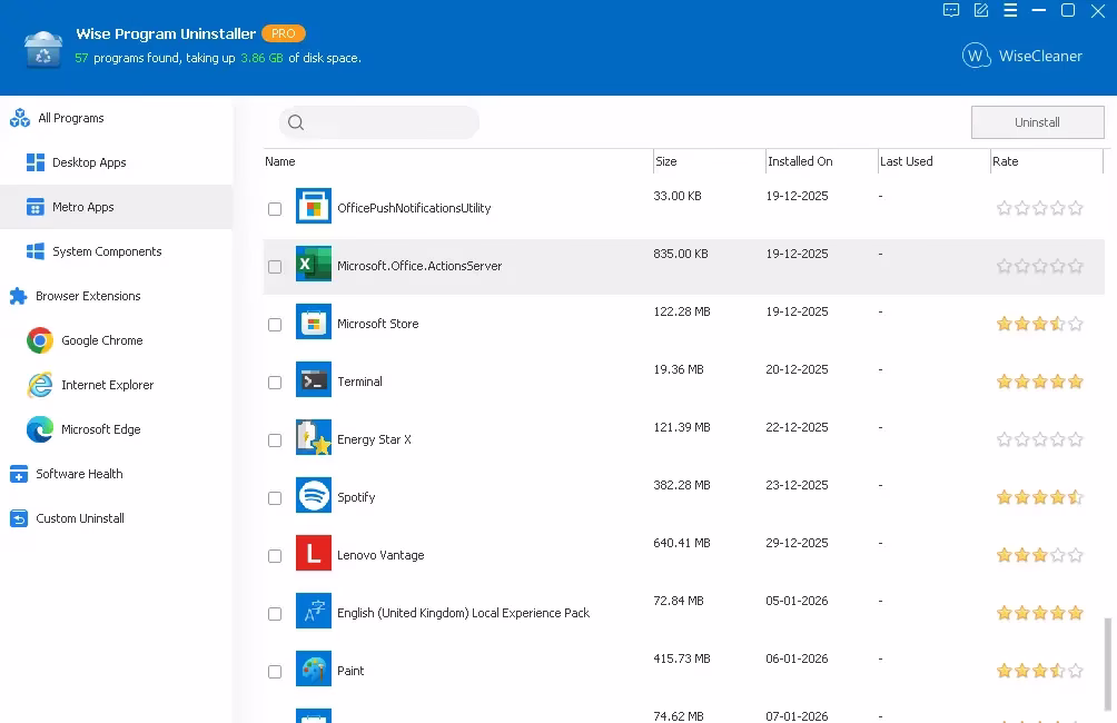Wise Program Uninstaller is a professional-grade utility designed to help you remove unwanted software, browser extensions, and Windows built-in apps.