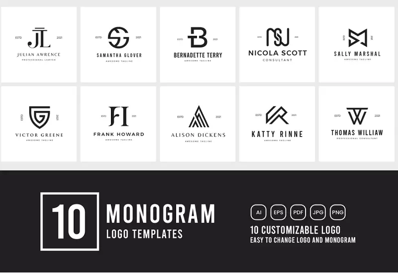 This kit contains ten simple and modern Monogram logo ideas; also, you can access only the Monogram graphics, which have been included in the download.