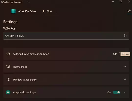 The software will connect automatically to the WSA, and if you designate it as the default app for handling Android APK files, it will launch in WSA-PacMan whenever you double-click an APK.